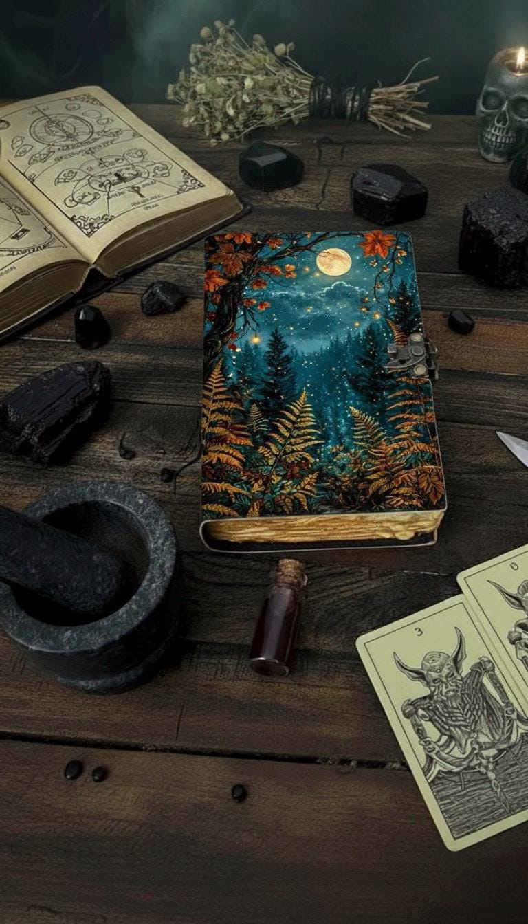 400 Page Grimoire Vintage leather journal, Moon Phase Handmade Fat Journal, Blank spell book of shadows Celestial Gifts For Him Her