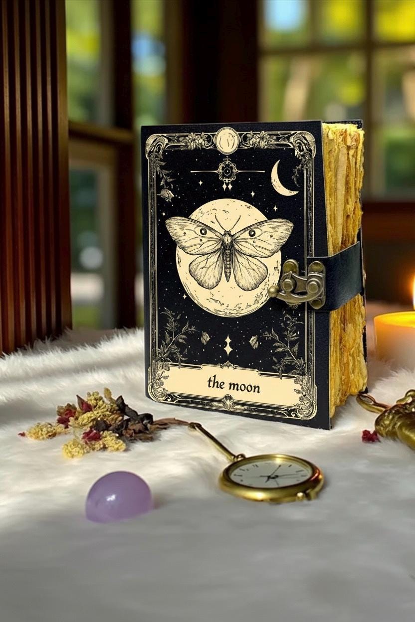 Grimoire Vintage leather journal, Moon Phase With Butterfly Handmade Fat Journal, spell book of shadows Celestial Gifts For Him Her • Print - Moon Phase • Vintage lock closure • Genuine buffalo leather • Vintage deckle edge old paper • handmade rustic cotton paper • 100 Sheet (200 pages both side) ●leather journal witchcraft book of shadows notebook is made with 200 pages of Antique Paper which looks like it was pulled from history. You will fall in love with the the antique handmade cotton paper which is unique to our vintage journal Notebook. ● The vintage clasp lock will keep all your valuable writing locked inside.Sturdy hand stitched binding to make sure that no paper comes out loose from your spell notebook. ● variations is printed with a special seven stone called “Chakra healing” which helps to reveal inner truth within yourself and encourage self-awareness and self expression. We have taken extra to make sure that the emboss is perfect in every piece. ● Sketch, Doodle, Write on your Leather Blank Spell Journal with a Calligraphy Pen Fountain Pen, Brush Pen, Ball Pen, Acrylic Colours, Watercolor and many more. We guarantee no bleed through. ● Can be used as a notepad, journal, writing notebook, sketch book. 1.25 inch thickness, easy for handwriting, drawing or sketching and compact for carrying in your bag. Ideal for alternative ● Artist Sketchbooks, Photo Album, Traveling Notes, Business Executive, Logbook, Poetry Work, Journalists, Food Planner, Instagram Scrapbook and Bible Journaling. ● Best Gift For Your Companion: A Journal Is Like A Trusted Friend. You Can Use It To Solve Queries, Get Inventive, Or Record Valuable Memories For Them To Last Forever Or You Can Just Use It As A Gift For Your Wife, Son, Or A Daughter Or For Some Enthusiastic Writer In Your Family. Even For Looking For A Miraculous spell book Or A D&D Gamer Looking For His Quest Book. ● Perfectly Sized For Multi-Purpose Use: Length 5", Width 1", Height 7" Inches, This Easy To Carry Personal Diary Is Perfect To Use As A Health Journal, Sketchbook, And Poetry Journal. It’S An Ideal Journal Which Records Your Daily Thoughts And Life Lists. And Also Good For Designing, Doodling, Or Calligraphy Of Your Choice. Moon Phase Journal Moon Book Moon Book of shadows Moon Journal Phase Journal Handmade Notebook Moon Phase Print journal Moon Magic Journal Book of shadows Blank Spell Book Harry Potter Gifts Gifts for Women Gifts for Men Leather journal Grimoire Black Magic Journal Halloween Gifts Christmas Gifts Harry Potter Spell Book Harry Potter Wizard Book Leather Wizard Book Dnd journal Junk Journal Harry Potter Print Harry Potter Book Harry Potter Wizard Book Spell Notebook Witchcraft Wiccan supplies & Tools Wiccan journal Handmade Journal Vintage Journal Potter spell book harry Potter spell harry Potter books harry Potter journal harry Potter gifts harry Potter design harry Potter notebook harry Potter magic harry pottery decor Potter gifts books of Potter books of harry Potter books of harry harry Potter wizards magic book harry journal harry gifts Potter vintage book wizard book wizard gifts books of wizard Phoenix