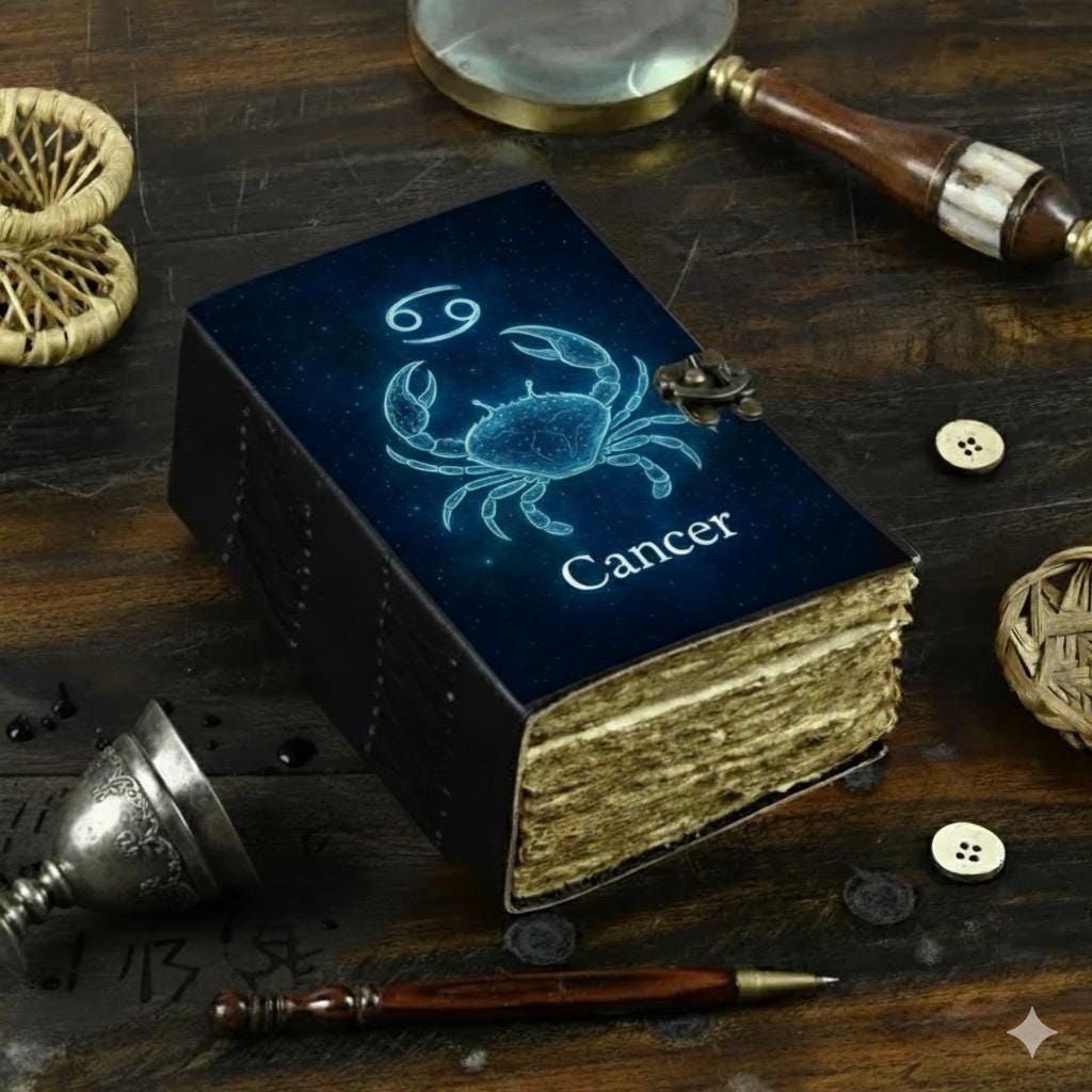 Cancer Grimoire Vintage leather journal, Zodiac Leather Journal, Blank spell book of shadows Birthday Gifts For Him Her