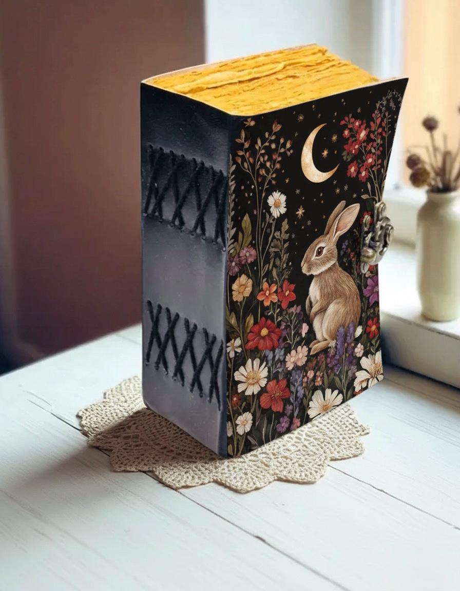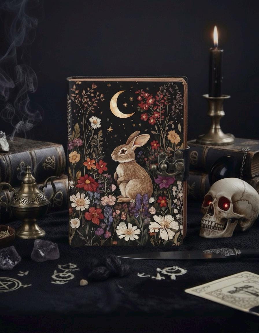 400 Page Large Rabbit Leather Journal, Personalized Leather Journal Gifts, Book of shadows Grimoire Leather Journal, Wizard Spell Book