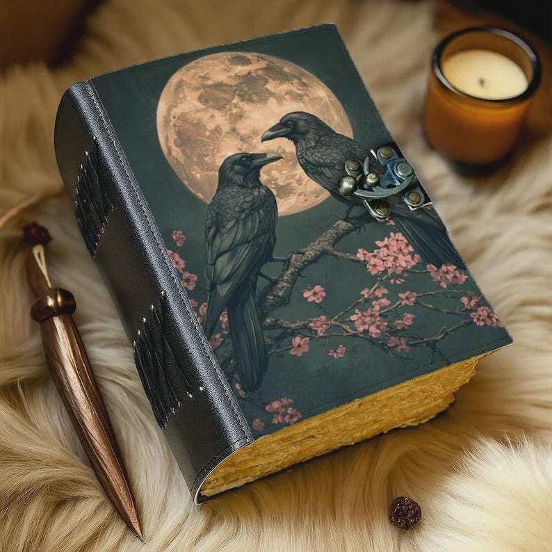Raven Grimoire Vintage leather journal, Raven Leather Journal, Blank spell book of shadows Halloween Gifts For Him Her • Print - Raven • Vintage lock closure • Genuine buffalo leather • Vintage deckle edge old paper • handmade rustic cotton paper • 100 Sheet (200 pages both side) ●leather journal witchcraft book of shadows notebook is made with 200 pages of Antique Paper which looks like it was pulled from history. You will fall in love with the the antique handmade cotton paper which is unique to our vintage journal Notebook. ● The vintage clasp lock will keep all your valuable writing locked inside.Sturdy hand stitched binding to make sure that no paper comes out loose from your spell notebook. ● variations is printed with a special seven stone called “Chakra healing” which helps to reveal inner truth within yourself and encourage self-awareness and self expression. We have taken extra to make sure that the emboss is perfect in every piece. ● Sketch, Doodle, Write on your Leather Blank Spell Journal with a Calligraphy Pen Fountain Pen, Brush Pen, Ball Pen, Acrylic Colours, Watercolor and many more. We guarantee no bleed through. ● Can be used as a notepad, journal, writing notebook, sketch book. 1.25 inch thickness, easy for handwriting, drawing or sketching and compact for carrying in your bag. Ideal for alternative ● Artist Sketchbooks, Photo Album, Traveling Notes, Business Executive, Logbook, Poetry Work, Journalists, Food Planner, Instagram Scrapbook and Bible Journaling. ● Best Gift For Your Companion: A Journal Is Like A Trusted Friend. You Can Use It To Solve Queries, Get Inventive, Or Record Valuable Memories For Them To Last Forever Or You Can Just Use It As A Gift For Your Wife, Son, Or A Daughter Or For Some Enthusiastic Writer In Your Family. Even For Looking For A Miraculous spell book Or A D&D Gamer Looking For His Quest Book. ● Perfectly Sized For Multi-Purpose Use: Length 5", Width 1", Height 7" Inches, This Easy To Carry Personal Diary Is Perfect To Use As A Health Journal, Sketchbook, And Poetry Journal. It’S An Ideal Journal Which Records Your Daily Thoughts And Life Lists. And Also Good For Designing, Doodling, Or Calligraphy Of Your Choice. Raven Journal Raven Book Raven Book of shadows Crow Journal Skull Journal Raven Notebook Crow Print journal Raven Magic Journal Book of shadows Blank Spell Book Harry Potter Gifts Gifts for Women Gifts for Men Leather journal Grimoire Black Magic Journal Halloween Gifts Christmas Gifts Harry Potter Spell Book Harry Potter Wizard Book Leather Wizard Book Dnd journal Junk Journal Harry Potter Print Harry Potter Book Harry Potter Wizard Book Spell Notebook Witchcraft Wiccan supplies & Tools Wiccan journal Handmade Journal Vintage Journal Potter spell book harry Potter spell harry Potter books harry Potter journal harry Potter gifts harry Potter design harry Potter notebook harry Potter magic harry pottery decor Potter gifts books of Potter books of harry Potter books of harry harry Potter wizards magic book harry journal harry gifts Potter vintage book wizard book wizard gifts books of wizard Phoenix