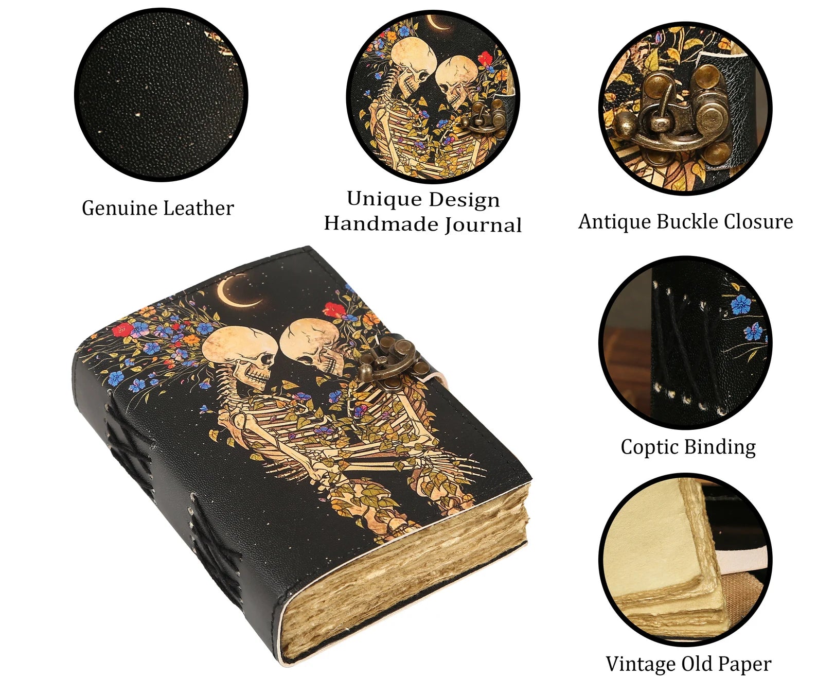 Book of Shadows Lovers Journal with Lock Clasp Vintage Handmade Leather Book of Spells The skull Lovers Tarot Print Diary Prayer Pagan