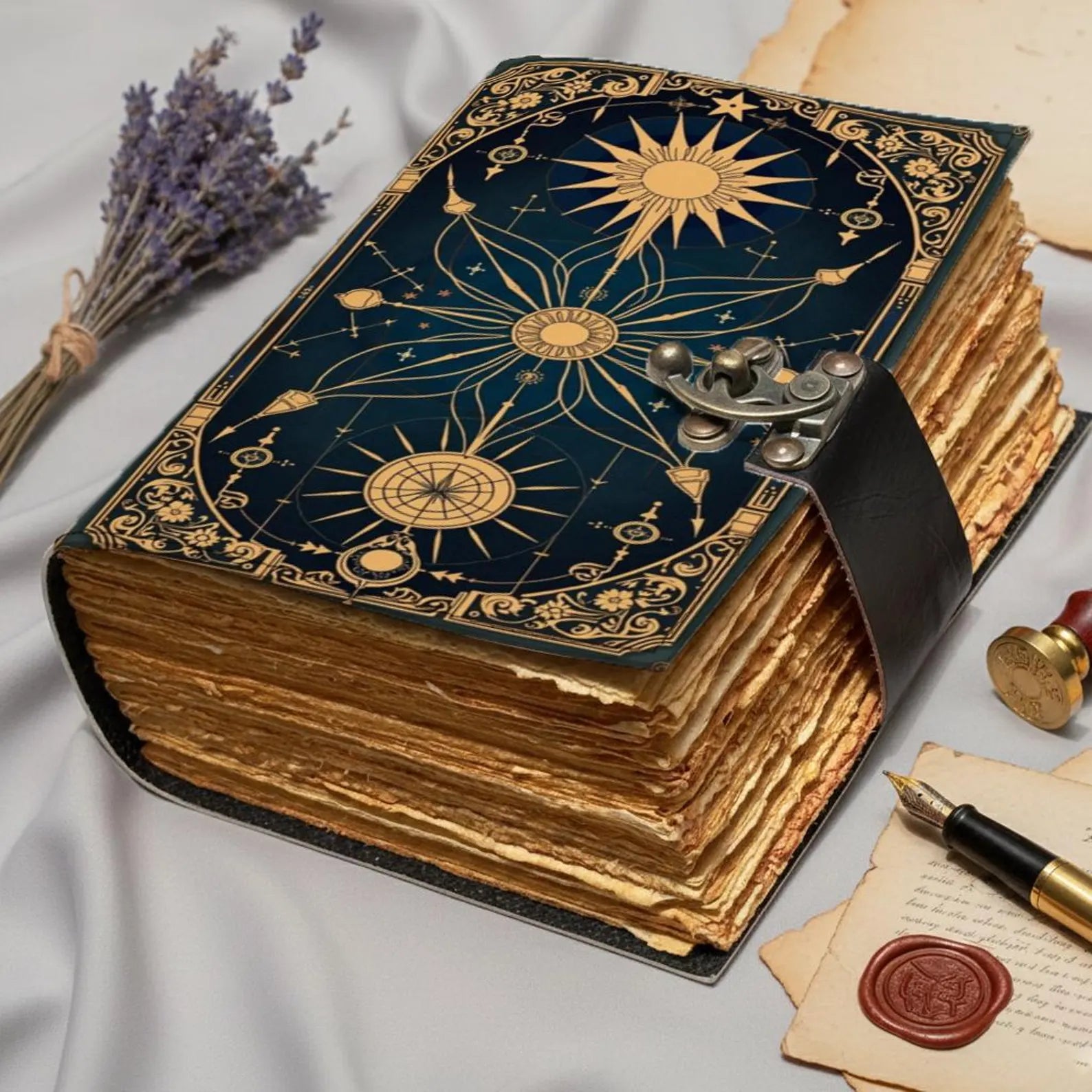 Celestial Compass Grimoire Journal | Vintage Star Map Spellbook with Aged Deckle Pages | Gothic Notebook | Antique Leather Diary Gift