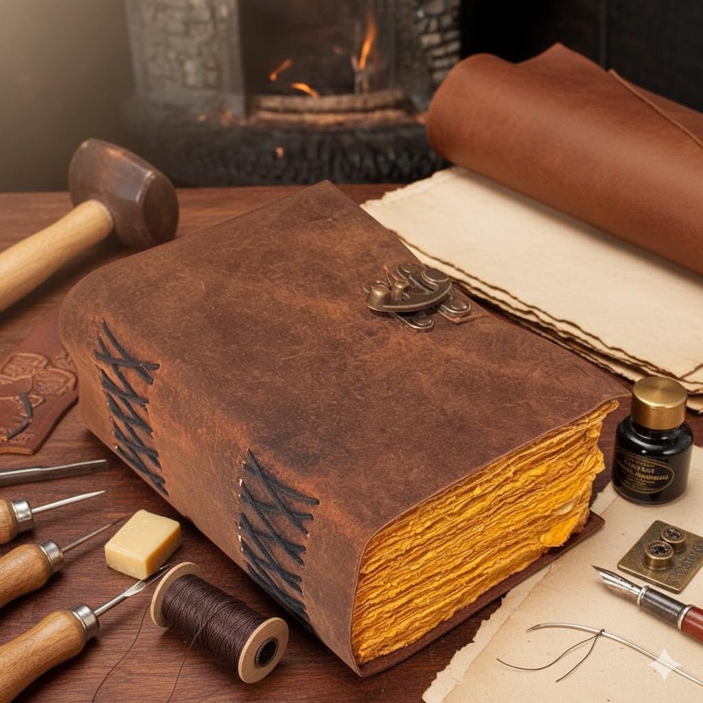 .Leather journal handmade vintage tree of life book of shadow grimoire fantasy birthday gift for women & men antique spell book • Genuine buffalo leather • Vintage deckle edge old paper • handmade rustic cotton paper • 100 Sheet (200 pages both side) - Leather journal witchcraft book of shadows notebook is made with 200 pages of Antique Paper which looks like it was pulled from history. You will fall in love with the the antique handmade cotton paper which is unique to our Vintage Journal Notebook. ● will keep all your valuable writing locked inside.Sturdy hand stitched binding to make sure that no paper comes out loose from your spell notebook. ● The witchcraft supplies journal is printed with a special seven stone called “Chakra healing” which helps to reveal inner truth within yourself and encourage self-awareness and self expression. We have taken extra to make sure that the emboss is perfect in every piece. ● Sketch, Doodle, Write on your Leather Blank Spell Journal with a Calligraphy Pen Fountain Pen, Brush Pen, Ball Pen, Acrylic Colours, Watercolor and many more. We guarantee no bleed through. ● Can be used as a notepad, journal, writing notebook, sketch book. 1.25 inch thickness, easy for handwriting, drawing or sketching and compact for carrying in your bag. Ideal for alternative ● Artist Sketchbooks, Photo Album, Traveling Notes, Business Executive, Logbook, Poetry Work, Journalists, Food Planner, Instagram Scrapbook and Bible Journaling. ● Best Gift For Your Companion: A Journal Is Like A Trusted Friend. You Can Use It To Solve Queries, Get Inventive, Or Record Valuable Memories For Them To Last Forever Or You Can Just Use It As A Gift For Your Wife, Son, Or A Daughter Or For Some Enthusiastic Writer In Your Family. Even For Looking For A Miraculous Spell Book Or A D&D Gamer Looking For His Quest Book. ● Perfectly Sized For Multi-Purpose Use: Length 5", Width 1", Height 7" Inches, This Easy To Carry Personal Diary Is Perfect To Use As A Health Journal, Sketchbook, And Poetry Journal. It’S An Ideal Journal Which Records Your Daily Thoughts And Life Lists. And Also Good For Designing, Doodling, Or Calligraphy Of Your Choice. Handmade journal, Blank Books, vintage diary, Genuine Leather Journal, Anniversary gift, Gifts for her, Personalized , Gifts for him, Valentines Gifts, a5 Journal leather journal, grimoire journal, junk journal, vintage notebook, witchcraft journal, spell book, book of shadows, sketchbook, drawing, Leatherbound journal, Travel Journal, green journal, old leather journal, leather journal, grimoire journal, vintage notebook, witchcraft journal, spell book, book of shadows, Sun Moon Journal, Vintage Journal, Blank Spell Book, Leather SketchBook, thick Journal, old journal, Leather journal, Vintage journal, Handmade Journal, Gromire Journal, Book of Shadows, Writing Journal, Travel Journal, Junk Journal, Antique Journal, Journal for Women, Journal with Lock, Journal for gifts, Notebook Sketchbook PERFECT FOR ALL YOUR DAILY WRITING AND DRAWING NEEDS -- Junk Journal -- Dungeons and Dragons Journal - DND -- Mothers Day Gift -- Nature journaling -- Instagram photobook or scrapbook -- Teen journal or girls' diary -- Travel diary -- Weight Watchers Records -- New baby records or journal -- Letters to your loved ones -- Letters to give to your children when they grow up -- Daily Notepad or Bullet Journal -- Scheduling and appointment reminders -- Life moments tracker -- Vacation scrapbook -- Story writing -- Notebook to write in