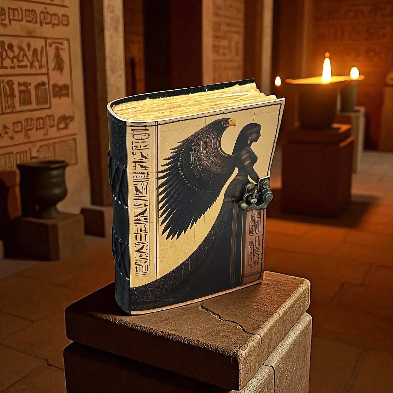 Egyptian Goddess Leather Journal: Handmade Hieroglyph Diary, Grimoire Sketchbook
