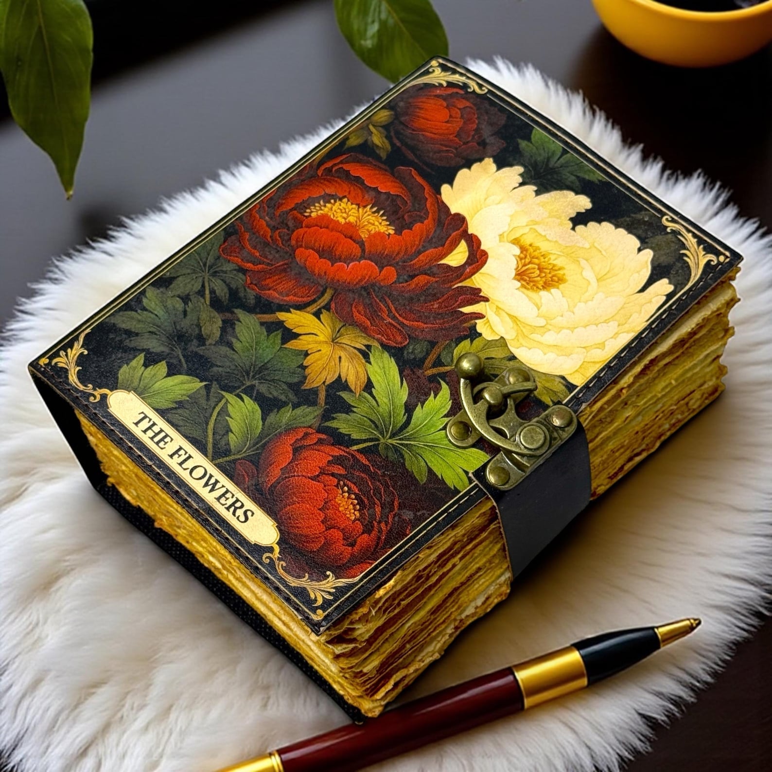 Floral Leather Grimoire – Gothic Book of Shadows, Witchcraft Spellbook, Wiccan Pagan Ritual Journal, Witchy Gift