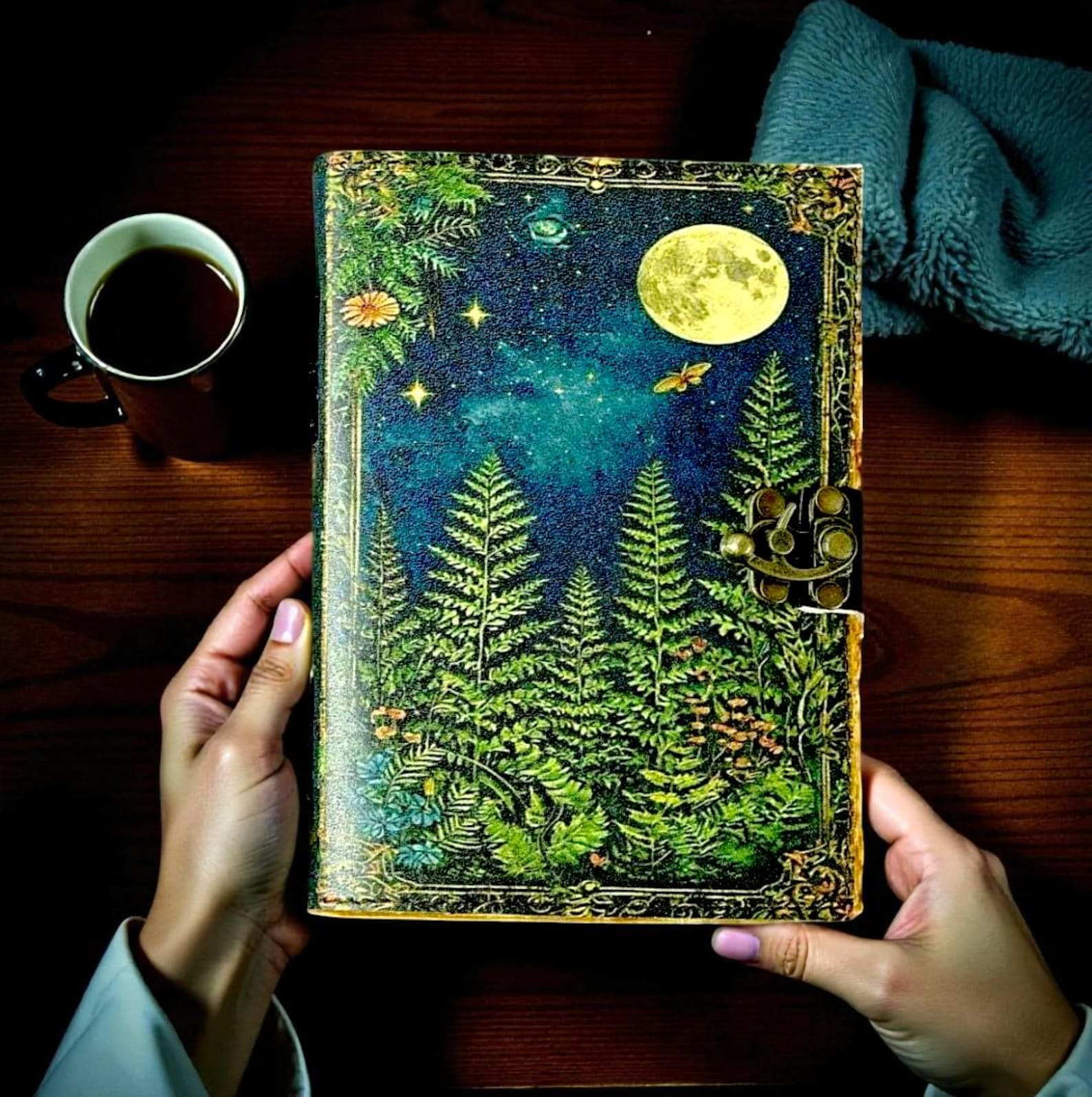 ✨ Magical Handmade Tree Leather Journal — Forest & Moon Edition ✨