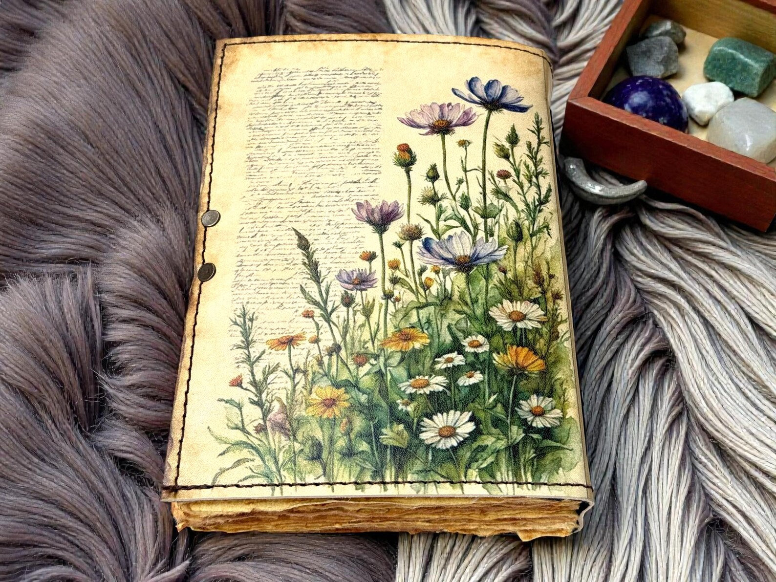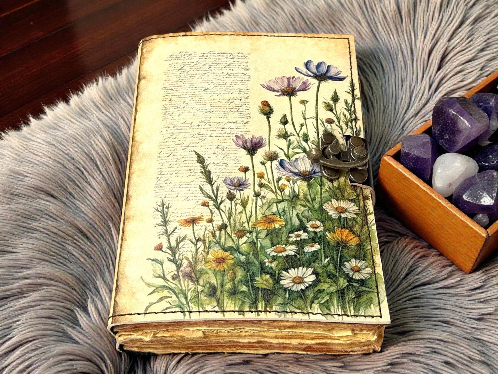 Handmade Leather Floral Grimoire Book of Shadows – Refillable Witchcraft Spell Journal | Vintage Wiccan Pagan Gothic Floral Gifts