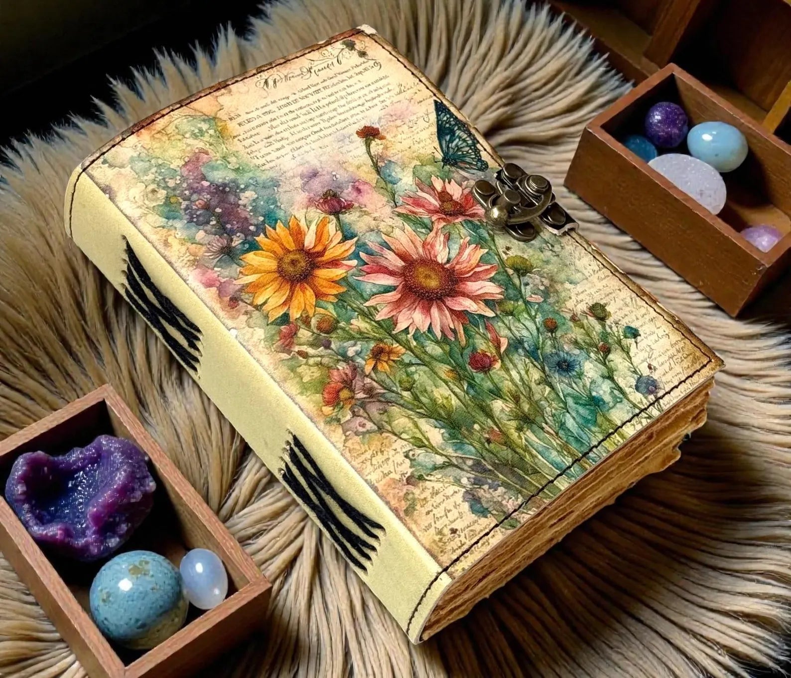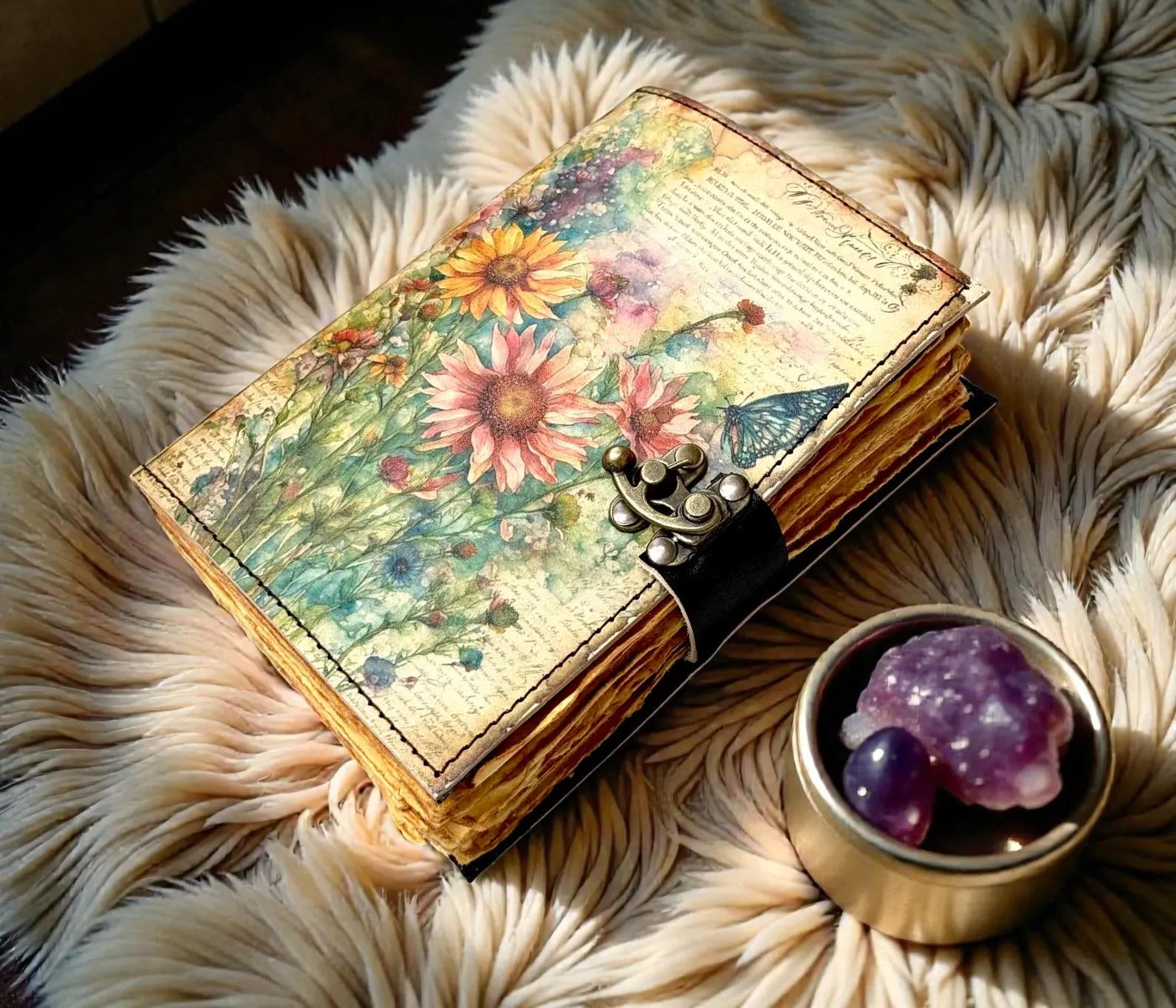 Handmade from genuine aged vintage leather and filled with 400 pages of thick, deckle-edge handmade cotton paper, this Book of Shadows feels like a relic taken from an old witch’s private library. Every page carries texture, weight, and intention — ready to hold spells, moon rituals, shadow work, manifestations, sigils, tarot records, affirmations, visions, and truths meant only for you.