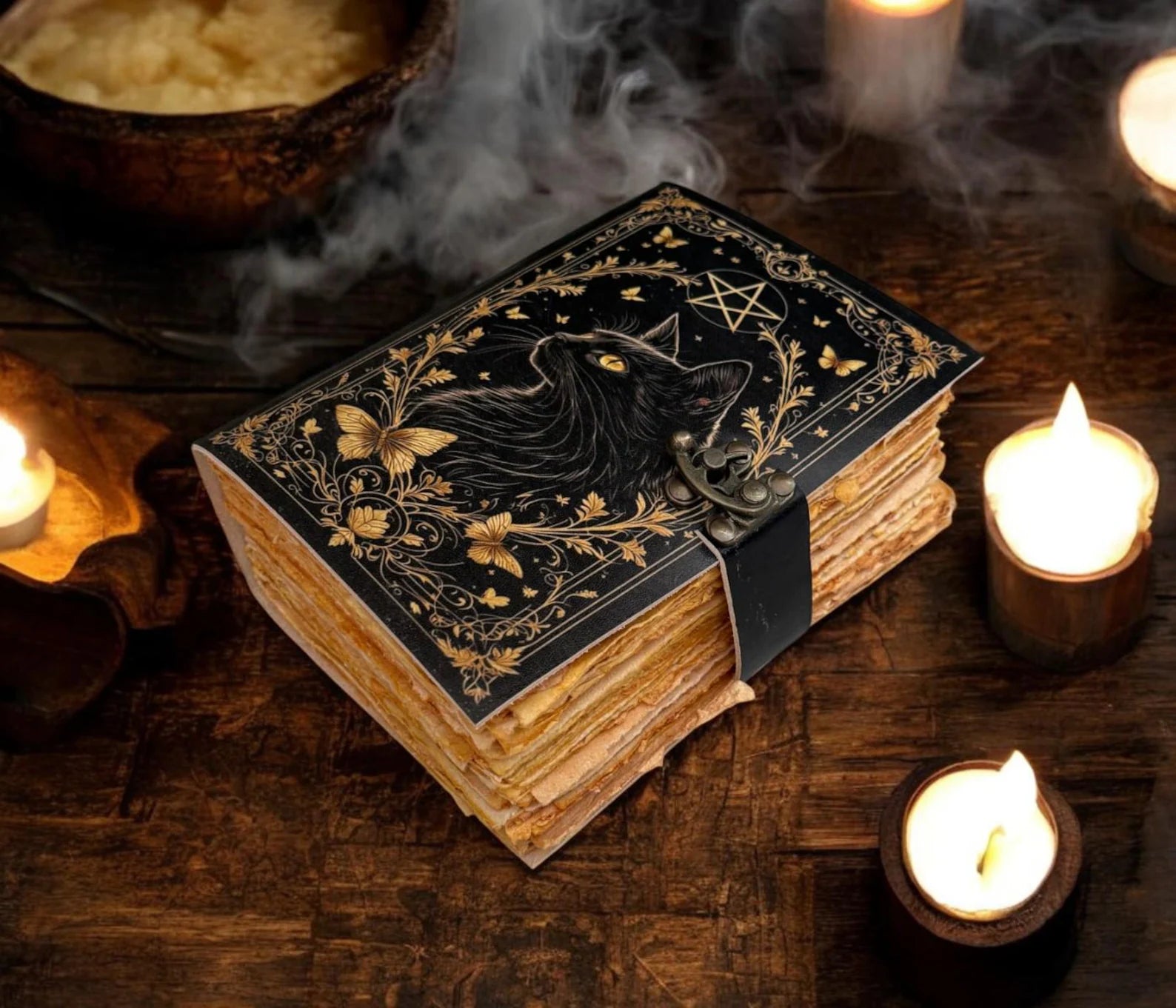 Leather Grimoire Journal: Cat Print Spell Book of Shadows