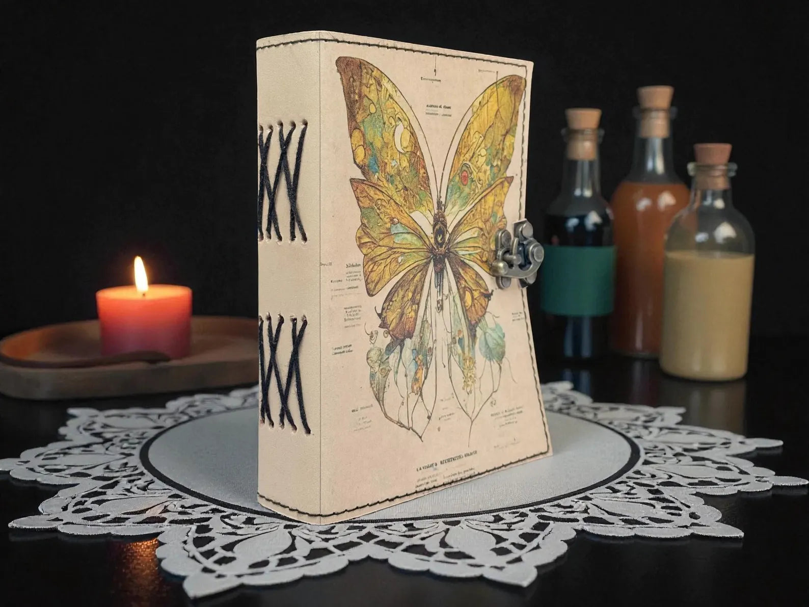 Luna Moth Leather Grimoire Journal – 400 Page Witchcraft Book of Shadows | Celestial Wiccan Spellbook, Gothic Pagan Witchy Gift Diary