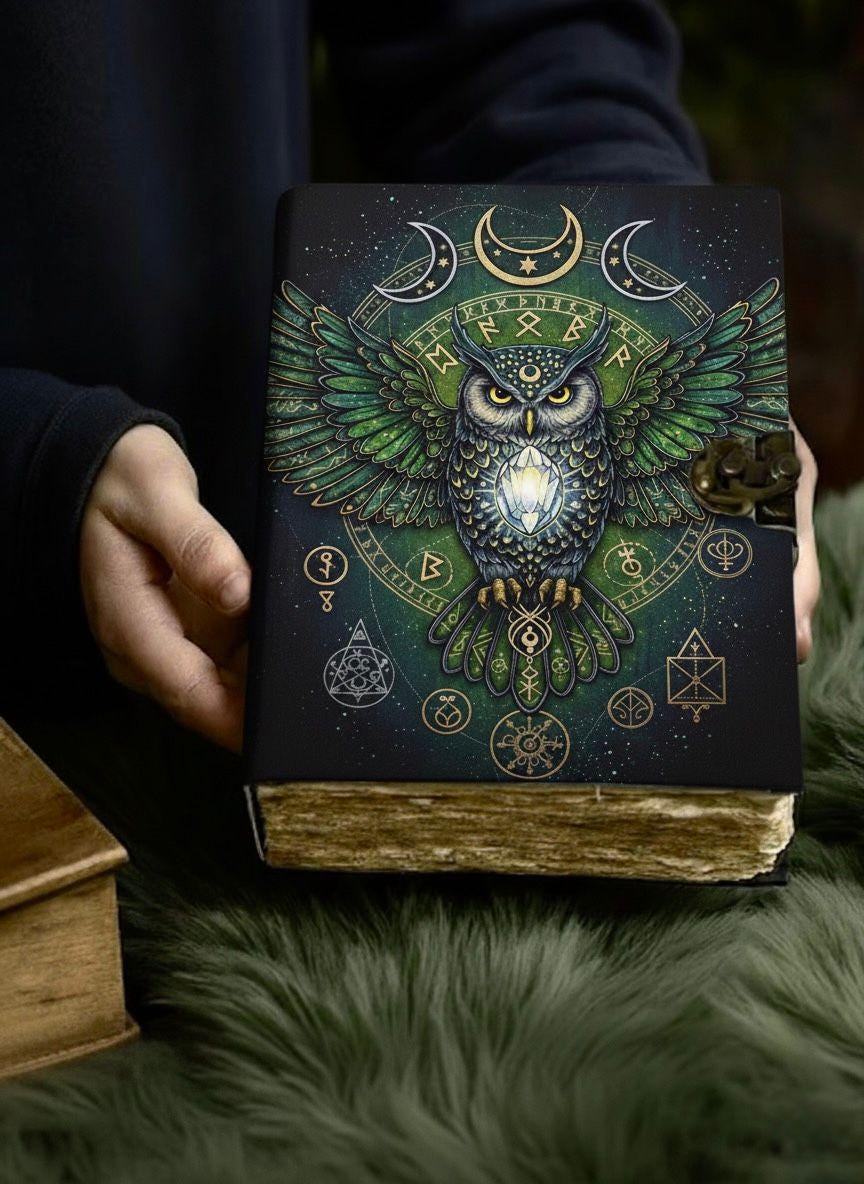 Owl Grimoire Leather Journal: Gothic Blank Book of Shadows