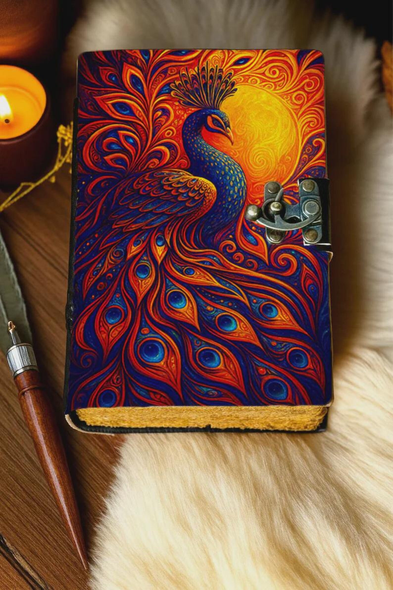 Peacock leather Grimoire journal Leather Notebook Grimoire Journal