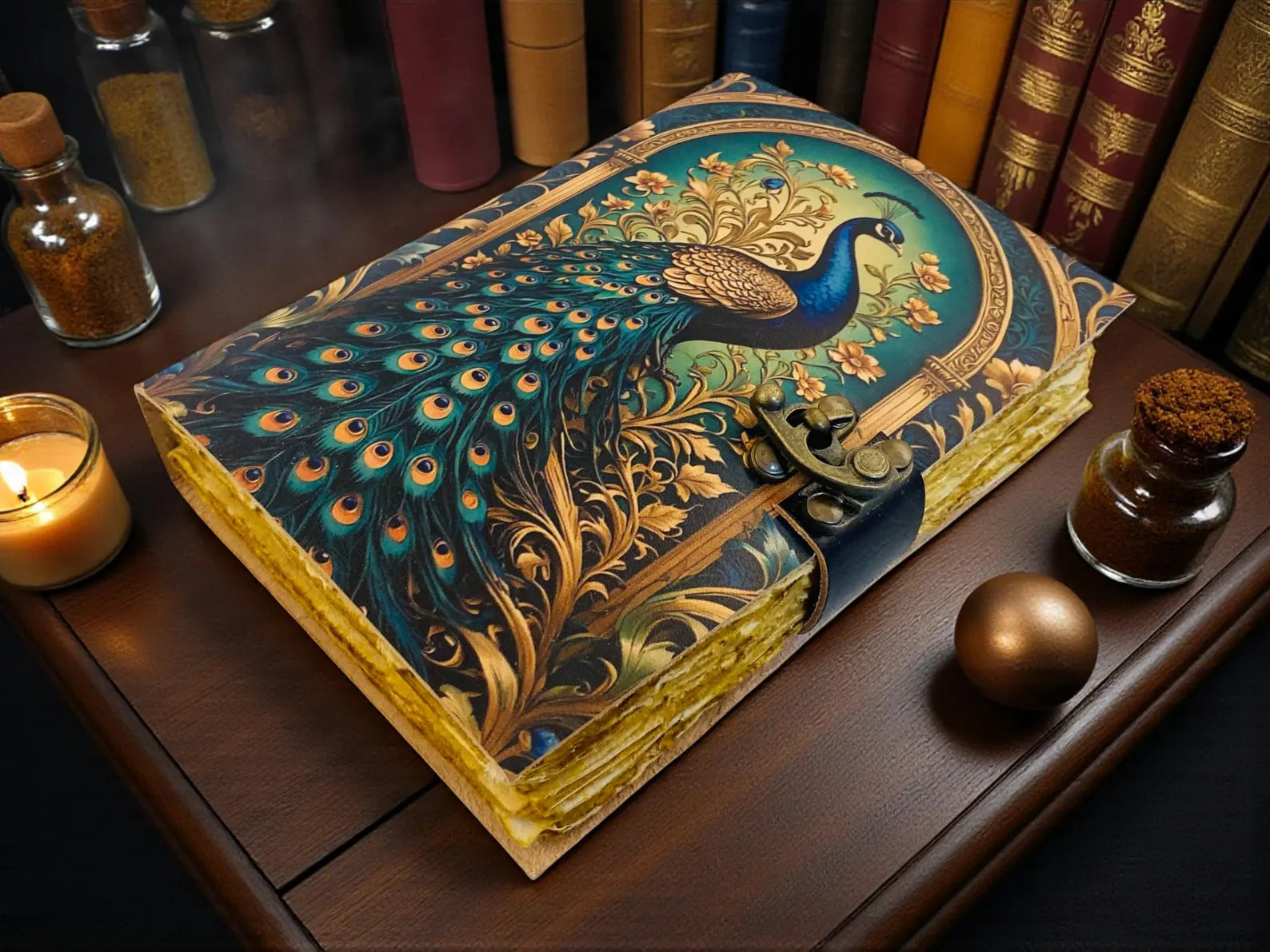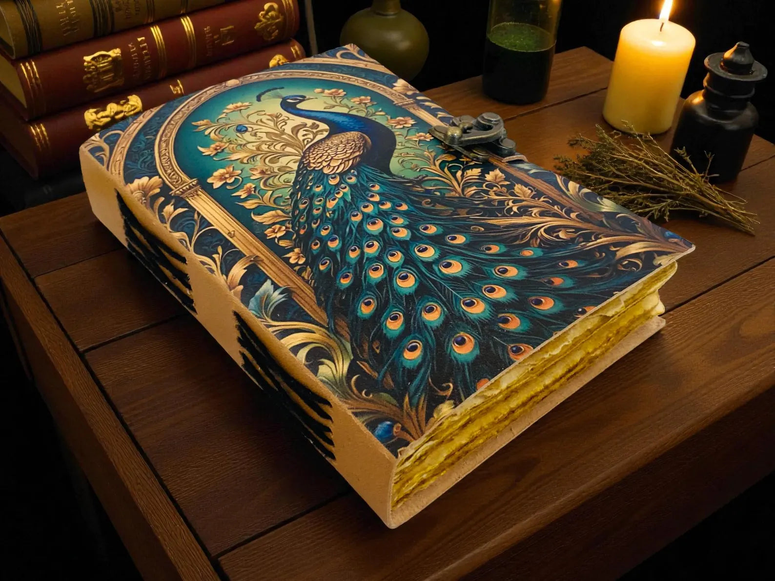 Peacock Leather Journal | Engraved Handmade Diary, Sketchbook