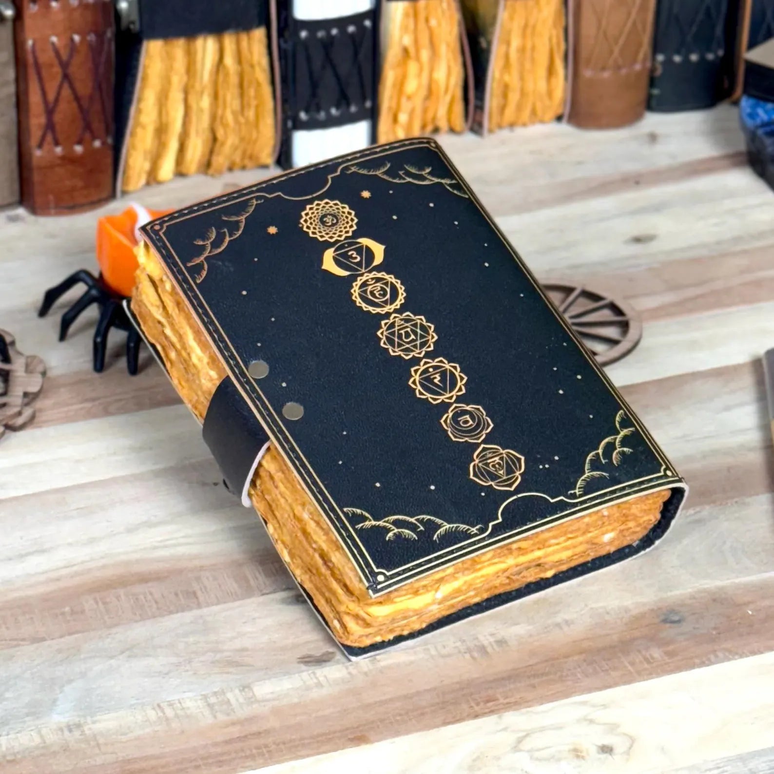Seven Chakra Symbols Leather Grimoire Journal