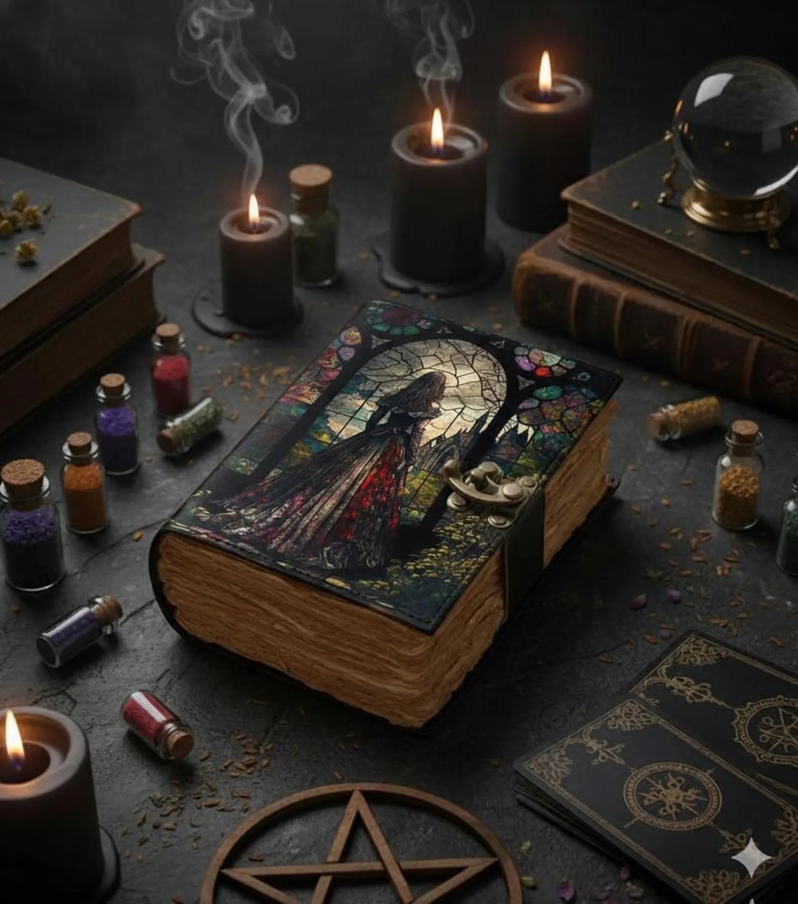 Spellbook, grimoire, Wicca journal or tarot journaling