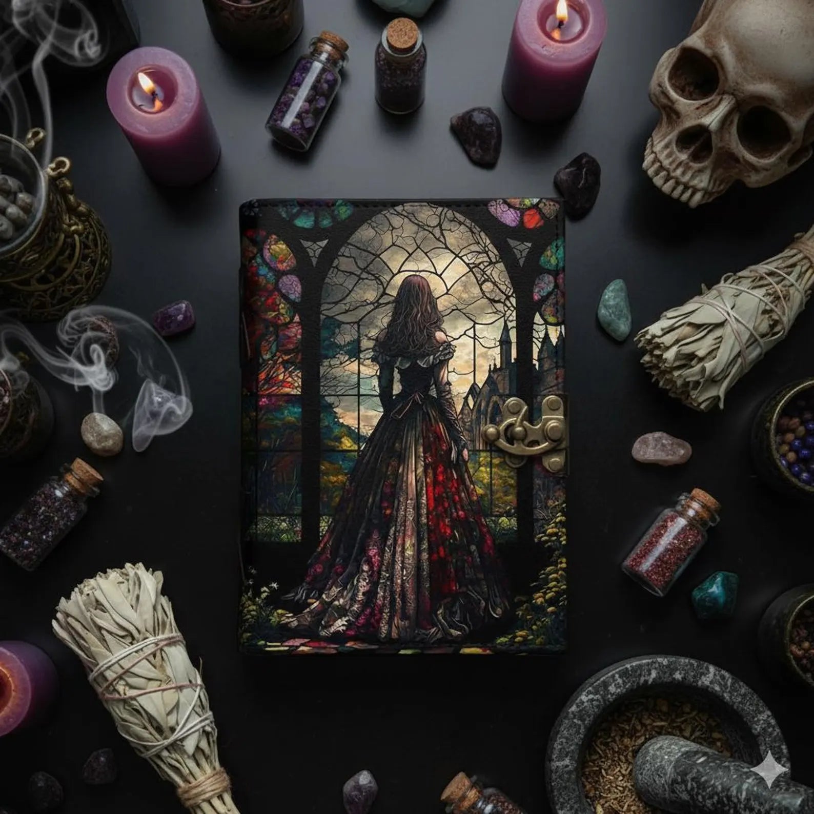 Witchcraft journal Embossed Leather Spell Book: Handmade Journal with Lock