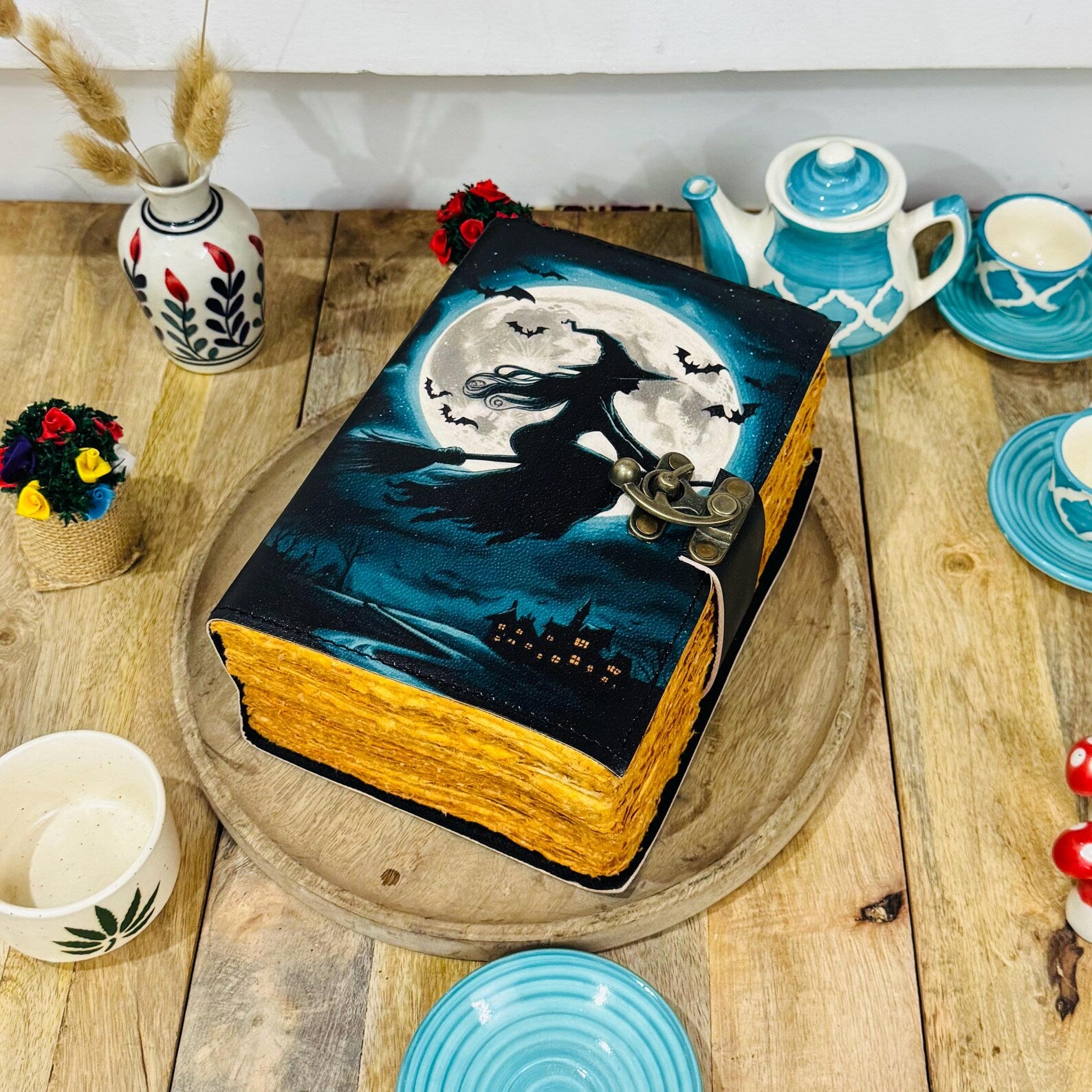 Witchcraft Journal Handmade || Dark Fantasy Moon Notebook || Handmade Witch Journal || Vintage Gothic Spell Book || Gifts For Him Her.